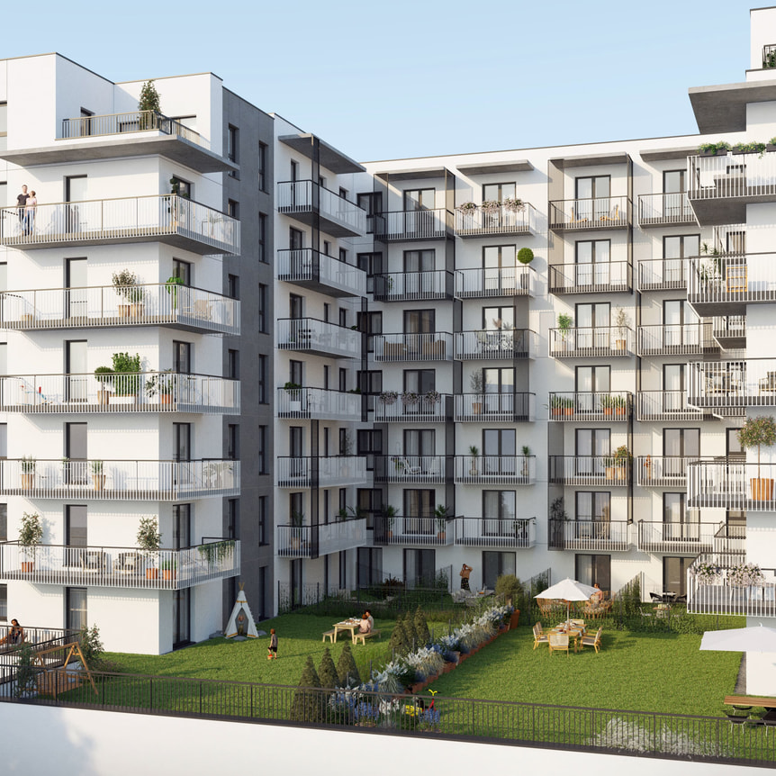 7. Dzielnica Olimpijska to teren wyposażony w strefy rekreacyjne dla komfortowego życia jej mieszkańców. Inwestycja zakłada realizację osiedla złożonego z 5 budynków mieszkalnych.